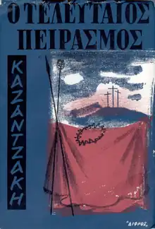 The Last Temptation of Christ or The Last Temptation (Greek: Ο Τελευταίος Πειρασμός, O Teleftéos Pirasmós) is a historical novel written by Nikos Kazantzakis, first published in its original Greek in 1955 before being translated into English in 1960. The novel depicts the life of Jesus and his struggles with various forms of temptation, including fear, doubt, depression, reluctance, and lust.