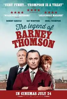 The Legend of Barney Thomson, known in the United States as Barney Thomson, is a 2015 British comedy thriller film based on the 1999 novel The Long Midnight of Barney Thomson by Douglas Lindsay. It is the directorial debut of Robert Carlyle, who also stars in the film, alongside Emma Thompson, Ray Winstone, Ashley Jensen and Brian Pettifer. It was previewed at the 2015 Edinburgh International Film Festival in June 2015 before its release on 24 July 2015.[4] The film also won the BAFTA Scotland Award for Best Feature Film.