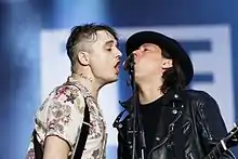 ![]() The Libertines performing in 2014 From left: Pete Doherty, Gary Powell (on drums), Carl Barât, John Hassell | |