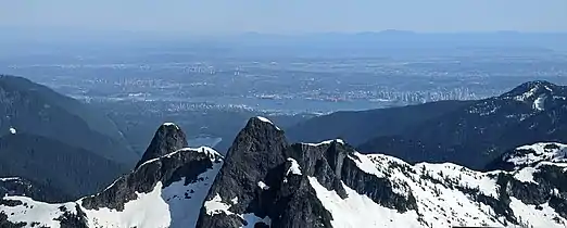View of the Lions from the north, with Vancouver in the background.