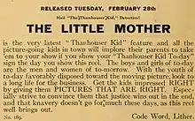 - 1 2 3 4 Q. David Bowers (1995). "The Little Mother". Thanhouser Films: An Encyclopedia and History. Retrieved 5 August 2015.
