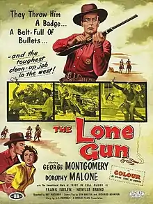 The Lone Gun is a 1954 American Western film directed by Ray Nazarro and starring George Montgomery and Dorothy Malone.[1]