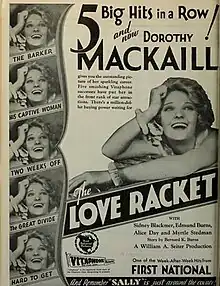 The Love Racket is a 1929 American early sound crime drama film produced and distributed by First National Pictures. It was directed by William A. Seiter and starred Dorothy Mackaill. It is based on a Broadway play, The Woman on the Jury by Bernard K. Burns, and is a remake of a 1924 silent film of the same name which starred Bessie Love.[1][2] The film is now considered lost.[3][4]