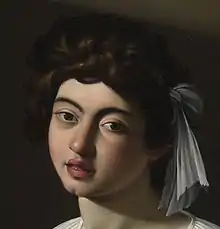 The rather androgynous model could be Pedro Montoya, a castrato known to have been a member of the Del Monte household and a singer at the Sistine Chapel at about this time – castrati were highly prized and the Cardinal was a patron of music as well as of painting. More recently Caravaggio biographer Peter Robb has identified him as Caravaggio's companion Mario Minniti, the model for several other paintings from this period including The Cardsharps and one of the two versions of The Fortune Teller.