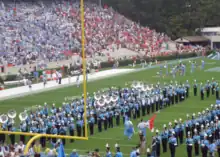 The Marching Tar Heels is the marching band of the University of North Carolina at Chapel Hill. Known as "The Pride of the ACC", the Marching Tar Heels is one of the largest organizations at UNC with over 290 students.[1] The band plays at all home football games as well as travels to away games, usually as a small pep band. However, the entire band travels to one away football game each year, usually staying close to home. These have included trips to universities such as NC State and East Carolina but have also included some longer trips to venues such as Notre Dame in 2006 and the Chick-fil-A Kickoff Game in 2010 and 2016.