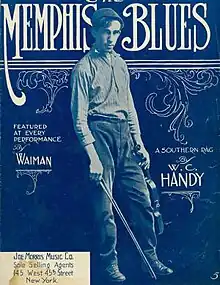 Subtitled "Mr. Crump", "The Memphis Blues" is said to be based on a campaign song written by Handy for Edward Crump, a mayoral candidate in Memphis, Tennessee.[4] Handy claimed credit for writing "Mr. Crump", but Memphis musicians say it was written by Handy's clarinetist, Paul Wyer.[5] Many musicologists question how much "Mr. Crump" actually shared with "The Memphis Blues", since the words, taken from an old folk song, "Mama Don' 'low", do not match up with the melody of "The Memphis Blues".[6][7] Many think "Mr. Crump" was probably the same song as "Mr. Crump Don't Like It", later recorded by Frank Stokes of the Beale Street Sheiks (Paramount Race series, September 1927).[8]
