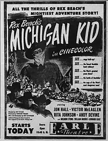 The Michigan Kid is a 1947 American Cinecolor Western film directed by Ray Taylor and starring Jon Hall, Victor McLaglen, Rita Johnson, and Andy Devine.[1]