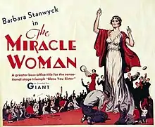 The Miracle Woman is a 1931 American pre-Code romance film directed by Frank Capra and starring Barbara Stanwyck, David Manners, and Sam Hardy. Based on the play Bless You Sister by John Meehan and Robert Riskin, the film is about a preacher's daughter who becomes disillusioned by the mistreatment of her dying father by his church. Having grown cynical about religion, she teams up with a con man and performs fake miracles for profit. The love and trust of a blind man, however, restores her faith in God and her fellow man. The Miracle Woman was the second of five film collaborations between Capra and Stanwyck. Produced and distributed by Columbia Pictures, the film was reportedly inspired by the life of Aimee Semple McPherson.[1]