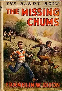 The Missing Chums is volume 4 in the original The Hardy Boys Mystery Stories published by Grosset & Dunlap. The book ranks 108th on Publishers Weekly's All-Time Bestselling Children's Book List for the United States, with 1,189,973 copies sold as of 2001.[1] This book is one of the "Original 10", generally considered to be the best examples of the Hardy Boys, and Stratemeyer Syndicate, writing.