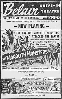 The Monolith Monsters is a 1957 American black-and-white science fiction film from Universal-International, produced by Howard Christie, directed by John Sherwood, and starring Grant Williams and Lola Albright. The film is based on a story by Jack Arnold and Robert M. Fresco, with a screenplay by Fresco and Norman Jolley.[1]