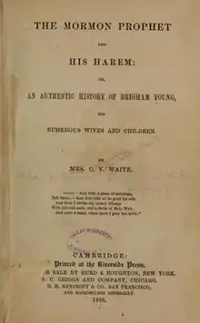 The Mormon Prophet and His Harem; or, an Authentic History of Brigham Young, His Numerous Wives and Children. is a biography of Brigham Young by C. V. Waite, first published in 1866.