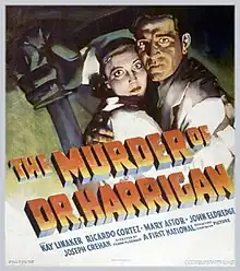 The Murder of Dr. Harrigan is a 1936 American mystery film directed by Frank McDonald and written by Peter Milne and Sy Bartlett. The film stars Ricardo Cortez, Kay Linaker, John Eldredge, Mary Astor, Joseph Crehan and Frank Reicher.[1][2] The film was released by Warner Bros. on January 11, 1936.[3] A story by Mignon G. Eberhart was the basis for the film. [4]