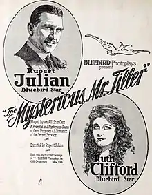 The Mysterious Mr. Tiller is a 1917 American silent mystery drama film directed by Rupert Julian and starring Ruth Clifford, Rupert Julian and Frank Brownlee.[1]