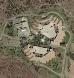 The center was originally situated on 2,265 acres (9.17 km2) of land in Leesburg, Virginia.[1] Through subsequent sales and subdivisions, the current complex sits on 66.8 acres (0.270 km2) of the original land.[7] Among its 265,000 square feet (24,600 m2) of meeting space are the 16,500 square feet (1,530 m2) ballroom, an 5,000 square feet (460 m2) athletic facility and 250 conference rooms.[11] The remainder of the nearly 1,200,000 square feet (110,000 m2) of the facility include 917 guest rooms (up from 863 rooms in the original facility) and common areas.[7][12] These facilities were converted from Xerox's dormitory style accommodations, which included shared bathrooms. The center retained the confusing navigational layout of the Xerox era, which was allegedly intended to encourage team building among participants.[6] The rooms in the lodging area were numbered by floor, building, room (ie. 6.1.201 is 6th floor, 1st building, room 101) to match the telephone switching system for future expansion.([13] The distinctive brutalist architecture was also retained, despite extensive renovations.