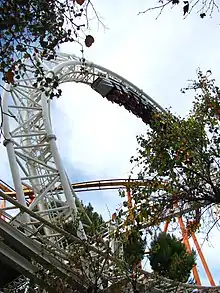 The New Revolution (formerly known as Revolution, Great American Revolution and La Revolución) is a steel roller coaster located at Six Flags Magic Mountain in Valencia, California. Manufactured by Anton Schwarzkopf and designed by Werner Stengel, the roller coaster opened to the public on May 8, 1976. The New Revolution is the world's first modern roller coaster to feature a vertical loop and has been recognized for that accomplishment by American Coaster Enthusiasts (ACE), who awarded the roller coaster its Coaster Landmark status.[1] However, there were earlier examples of roller coasters with a full vertical loop, such as the steel roller coaster called "Looping the Loop" in Parque Japonés in Buenos Aires, which operated from 1911 to 1930.[2]