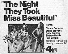 The Night They Took Miss Beautiful is a 1977 American made-for-television drama film appearing on the NBC network that was produced by Don Kirshner. The film features a large number of stars in a story about "skyjacking beauty queens" on a Consolidated PBY Catalina. The passengers include five beauty pageant contestants, their entourage, and a secret agent carrying a vial of a secret and highly fatal biological warfare toxin that if opened can cause a pandemic.[1]