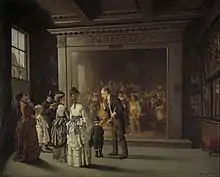 For much of its existence, the painting was coated with a dark varnish, which gave the incorrect impression that it depicted a night scene, leading to the name by which it is now commonly known.[13] On 13 January 1911, a jobless shoemaker and former Navy chef attempted to slash the painting with a shoemaker's knife protesting his inability to find work.[14][15] However, the thick coating of varnish protected the painting from any damage at that time.[13] The varnish was removed only in the 1940s.[16]