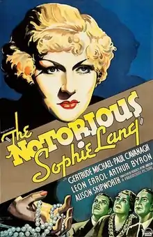 The Notorious Sophie Lang is a 1934 American crime drama film directed by Ralph Murphy and starring Gertrude Michael, Paul Cavanagh and Alison Skipworth.[1]