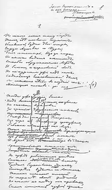 ![]() The first page of the poem manuscript | |