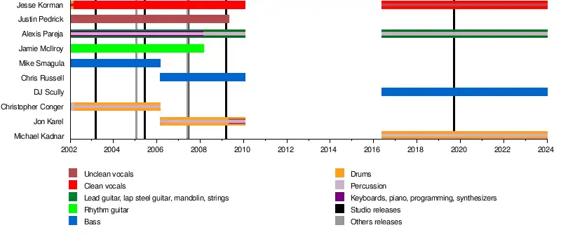 - Justin Pedrick — co-lead vocals (2002–2009)