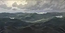 Later commentators also found much to praise in The Oceanides. Guy Rickards describes the tone poem as an "extraordinary score", magnificent yet subtle in its depiction of the sea's various moods, but nonetheless "music suffused by light",[51] while Robert Layton sees the piece as "far more ambitious and highly organized in design" than its immediate predecessor, The Bard.[52] Tawaststjerna notes Sibelius's success at characterizing the sea: the "playful flutes" that bring the oceanides to life but which feel "alien" in the landscape's vastness; the "powerful swell" of wind and water conveyed by oboe and clarinet over undulating strings and harp glissandi; the sustained wind chord symbolizing the "limitless expanse of the sea"; and, the "mighty climax" of the storm, the final wave crash which "always exceeds one's expectations".[53] The Finnish composer Kalevi Aho has argued in favor of the D♭ major Yale version, feeling as though the piece loses "something essential" in terms of orchestral color in D major: "The orchestral tone in D♭ major is veiled, somehow mysterious and impressionistic. Compared with it D major sounds clearer, but also more matter-of-fact".[15] The conductor Osmo Vänskä also has noted the difference between the two keys, comparing the D♭ major version to a "large lake" and the D major to a "mighty ocean".[12]