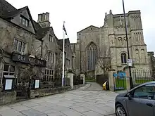 The Old Bell is a hotel and restaurant in the Cotswold market town of Malmesbury, Wiltshire. The hotel is in the centre of the town, immediately next to the 12th-century remains of Malmesbury Abbey. The Old Bell is a Grade I listed building[1][2][3] because of its architectural and historic significance. Substantial parts of the fabric of the hotel date back to the 13th century when it was the guest house of the Abbey. It has a claim to be considered as the oldest hotel in England. It was built in about 1220 on the site of Malmesbury Castle, which was obtained by the monks and demolished in 1216.