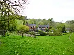 The furnace was situated in the Churnet Valley in the Staffordshire moorlands. A later Elizabethan-era blast furnace once stood on the site of the present Old Furnace Cottage. That furnace, the first in the north of England,[1] was constructed in 1592 by Lawrence Loggin.[2] The stone was brought three miles from Hollington by mule down an ancient trackway. This path can still be seen in the field next to the cottage. Problems arose from the outset, and after nine months the site was abandoned, which gave way to its old furnace name.