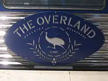 In November 1997, Australian National was sold and the passenger cars passed to Great Southern Rail Limited, which contracted National Rail to haul the services with NR class locomotives.[36][43] On occasions, BL and 93 class locomotives hauled the service.[44][45] In July 1998, the Wednesday and Saturday night journeys in each direction were cancelled, leaving the service operating five times per week in each direction.[46] In May 1999, a new timetable was introduced but with previous intermediate stops omitted at Stawell, Murtoa, Nhill, Kaniva, Wolseley, Tintinara, Coonalpyn and Tailem Bend.[47] In 1999, the maroon and silver livery was removed and the train was repainted in a new grey and silver scheme, with a new kookaburra logo.[34] In May 2000, the service was reduced to four times weekly. However, with an accelerated journey time of 10 hours 30 minutes, the service was able to be operated by one set of passenger cars, operating to Melbourne in the day and to Adelaide overnight.[48][49] Some of the largest Overland consists were run during this era; during the 2002 AFL finals, in which both the Adelaide Crows and Port Adelaide Power were competing, The Overland was built up to a record 32 carriages for the Preliminary Final round on 21 September.[50]