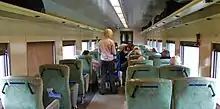 Twinette cars Tawarri and Yankai were added in 1967,[27][28] and these also followed the newer style of interior. Thus from the early 1970s onwards in the newer style there were two roomette cars, Allambi and Tantini, four twinette cars, Dorai, Tawarri, Weroni, and Yankai. In 1971, roomette cars Allambi and Tantini and twinette cars Dorai and Weroni[29][30][31][32] were sold to the Victorian Railways for use on The Vinelander to Mildura, and replaced with new carriages.[33] They were repainted dark blue and their names removed; these names were then applied to the same type of new cars built to replace them. The interiors of these new cars were of a more modern design than the older cars. The roomette cars had a zigzag corridor instead of a straight one, and the compartments had the shape of a trapezium. This enabled the use of the toilet and washbasin units while the bed was still down, not possible in the older roomettes.