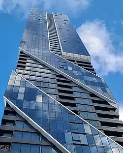 The Pacifica is a residential skyscraper in Auckland, New Zealand. Completed in 2020, it is the tallest residential building in New Zealand, surpassing the Metropolis, but is set to be overtaken in 2024 by the 187 m (614 ft) Seascape.[1] The building overlooks Auckland city and the surrounding harbour at 178.7 metres (586 ft) and 57 floors in height.[2]