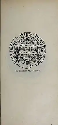 - ↑ Stone, Wilbur Macey (1902). Women designers of book-plates. Randolph R. Beam. pp. 36. LCCN 21001867.