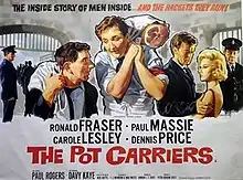 The Pot Carriers is a 1962 British comedy-drama film directed by Peter Graham Scott and produced by Gordon Scott for ABPC.[1] It stars Ronald Fraser, Paul Massie, Carole Lesley and Dennis Price.[2] The film is largely set in Wandsworth prison and is a remake of the ITV Play of the Week: The Pot Carriers (1960), which writer Mike Watts based on his own prison experiences.[3][4] The film centres around a young prisoner called Rainbow as he struggles to adjust to his first stretch behind bars.[5]