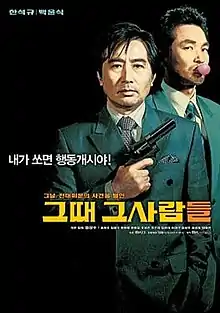The President's Last Bang: (Korean: 그때 그사람들; RR: Geudttae Geusaramdeul)[nb 1] is a 2005 satirical black comedy film by South Korean director Im Sang-soo about the events leading to and the aftermath of the assassination of Park Chung Hee, then the South Korean President, by his close friend and Korean Intelligence Agency director Kim Jae-kyu.