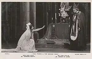 The play was also made into two films: The Prince and the Beggar Maid (1910),[8] and The Prince and the Beggarmaid (1921), with Henry Ainley as Prince Olaf and Kathleen Vaughan as Princess Monika.[9] During 1927 and 1935 Tod Slaughter toured the provinces of the United Kingdom with his own company in which he played Prince Olaf.[10][11]