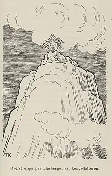 ![]() The princess sits atop the steep glass hill. Illustration from Barne-Eventyr (1915). | |
