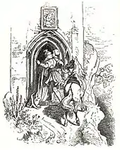 August Leskien acknowledged that the "numerous" Slavic variants "almost universally begin" with the father's dying wish for his sons to hold a vigil for his coffin or dead body at night.[24] The vigil on the grave is also considered to be "the most popular trial" in Lithuanian variants.[25]