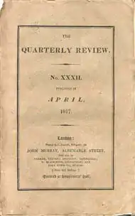 The Quarterly Review was a literary and political periodical founded in March 1809[1] by London publishing house John Murray. It ceased publication in 1967. It was referred to as The London Quarterly Review, as reprinted by Leonard Scott, for an American edition.[2]