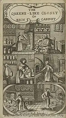 The Queen-like Closet, Or, Rich Cabinet was a cookery book published in 1670 by the English writer on household management, Hannah Woolley[lower-alpha 1] (1622 – c.1675).[1] It ran through five English editions by 1684. At least two German editions were also printed.