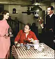 The film also presents Ford's depiction of an idealized Irish society, with only implied social divisions based on class and differences in political or religious affiliations. The Catholic priest, Father Lonergan, and the Protestant minister, Reverend Playfair, maintain a strong friendly relationship throughout the film, which represented the norm in what was then the Irish Free State, where religious tensions occurred in the 1930s but were the norm only in Northern Ireland. One of the allusions to Anglo-Irish animosity occurs after the happy couple is married and a congratulatory toast offered by Hugh Forbes expresses the wish that they live in "national freedom" (the term national has been censored from most editions)[11] and before the final donnybrook when Thornton demands his wife's dowry from Danaher. Danaher asks Hugh Forbes, who had been commander of the local Irish Republican Army unit during the fight to expel the British, "So the IRA is in this too, ah", to which Forbes replies, "If it were, not a scorched stone of your fine house would be standing."