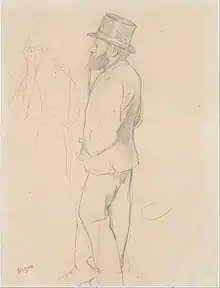 Longchamp quickly became well known and was a popular spot for upper-class visitors. While its most popular times were during racing season, from April to September, it was still used for social events during the off-season.[5][4] Most visitors did not follow the races closely, instead using the pretext of the race to socialize. Attendees included artists such as Manet and Degas (who sketched Manet at Longchamp). The Jockey Club put together races such as the Grand Prix and paid out the rewards to the winning horses, often using money raised by outside sources. For example, the first Grand Prix in 1863 was funded by both Paris and the five main rail companies in France.[5]