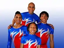 The family consists of husband Marcelo de Ramos, born in Brazil (1970), who is professionally known as "Marcelo The Daredevil".[8] He is a stuntman and Extreme Gymnast originally from Brazil,[9] Wife Anita Grosvenor Ramos born in Liverpool (1974), Acrobat and keep fit instructor. Marcelo and Anita got married in Liverpool in 1995 and have 3 children Jordan Ramos born in Brazil in (1995).)[10] Jordan is a former Gymnast for Great Britain, and represented Great Britain in 2 Junior World tumbling Championships.[11][12] Samuel Ramos born in Sheffield (2003) Samuel at the age of just 6 years old made news for his outstanding Gymnastic Skills and for wanting to join the GB team at the 2012 Olympics[13] despite him being too young to compete. Rio Ramos was born in Sheffield (2010). The Ramos Acrobats have appeared in various reality TV shows, newspapers, and magazines.