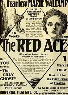 The Red Ace is a 1917 American adventure film serial directed by Jacques Jaccard. An incomplete print which is missing four chapters survives in the film archive of the Library of Congress.[1]