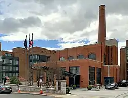The Ritz-Carlton Georgetown opened in 2003.[1] The hotel was built as part of a $175 million complex financed by developer Millennium Partners that included the 86-room hotel, a 29-unit condominium, a 14-screen movie theater, and a 600-space parking garage. The building, a former incinerator, was renovated to appear as three distinct buildings from the outside. The hotel occupied the eastern and western "buildings", while the condominiums and the hotel's lobby, bar, and lounge occupied the central section. Millennium Partners began selling the condominiums at $2 million for 3,300 square feet (310 m2) and $9 million for 6,500 square feet (600 m2), and used the proceeds to cover debt service on the hotel.[2]
