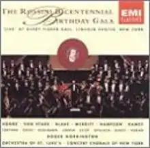 The Rossini Bicentennial Birthday Gala is a live album of operatic and sacred music by Gioachino Rossini, performed by Rockwell Blake, Craig Estep, Maria Fortuna, Thomas Hampson, George Hogan, Marilyn Horne, Kathleen Kuhlmann, Mimi Lerner, Chris Merritt, Jan Opalach, Samuel Ramey, Henry Runey, Frederica von Stade, Deborah Voigt, the Concert Chorale of New York and the Orchestra of St. Luke's under the direction of Sir Roger Norrington. It was released in 1993 as a 119-minute video album and in 1994 as a 78-minute CD.