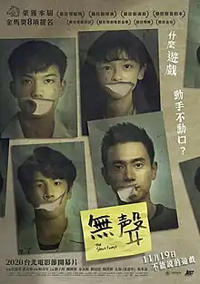 The Silent Forest (Chinese: 無聲) is a 2020 Taiwanese social psychological thriller drama film directed by Ko Chien-Nien.[2] The film was inspired by a real-life sexual abuse scandal at National Tainan Special School, a Taiwanese school for the deaf.[3][2] It was nominated for 8 Golden Horse Awards and won 2 awards, for Best New Performer and Best Sound Effects.[4] The film released in Taiwan on October 15, 2020. The film will be exclusively released on HowPro+ and Disney+ Hotstar in Malaysia on June 1, 2021, and in Thailand on June 30, 2021.
