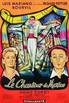 The Singer from Mexico (French: Le Chanteur de Mexico) is a French-Spanish musical film directed by Richard Pottier starring Luis Mariano and Bourvil, released in 1957. It was a screen version of Francis Lopez's operetta that premiered at the Théâtre du Châtelet on 15 December 1951. It was in a tradition of operetta films that stretched back to the early sound era.