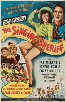 The Singing Sheriff is a 1944 American Western comedy film directed by Leslie Goodwins and written by Henry Blankfort and Eugene Conrad. The film stars Bob Crosby, Fay McKenzie, Fuzzy Knight, Iris Adrian, Samuel S. Hinds, Edward Norris, Andrew Tombes and Joe Sawyer. The film was released on October 6, 1944, by Universal Pictures.[1][2][3]