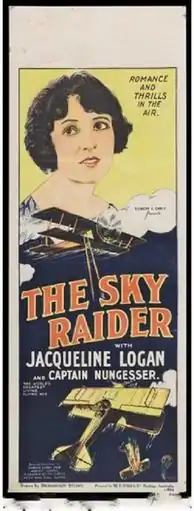 The Sky Raider is a 1925 American silent drama film directed by T. Hayes Hunter and starring Charles Nungesser, Jacqueline Logan and Gladys Walton.[1][2] With the interest in the aviators of World War I, producer Gilbert E. Gable and Arcadia Productions, were able to showcase the talents of Nungesser, a genuine hero, who had 43 aerial victories, as the third-highest French ace.[3] The Sky Raider was based on the short story, "The Great Air Mail Robbery" by Jack Lait.[4]