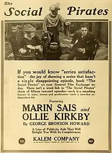 The Social Pirates is a 1916 American silent film serial directed by James W. Horne. It starred Marin Sais, Ollie Kirkby and True Boardman. It was written by George Bronson Howard and produced by the Kalem Company.[1]