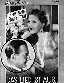 The Song Is Ended (German: Das Lied ist aus) is a 1930 German romantic musical film directed by Géza von Bolváry, and starring Liane Haid, Willi Forst, and Margarete Schlegel.[1] A separate French-language version Petit officier... Adieu! was also produced. It was shot at the Tempelhof Studios in Berlin. The film's sets were designed by the art directors Robert Neppach and Erwin Scharf.
